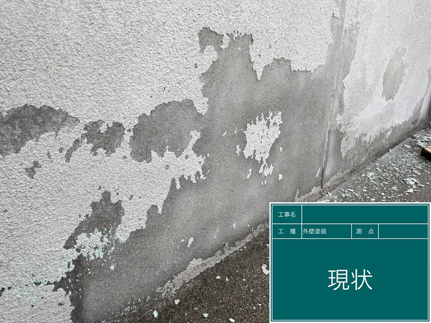 外壁は塗膜がなく、クラック(割れ)が多数ありました。