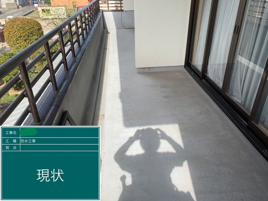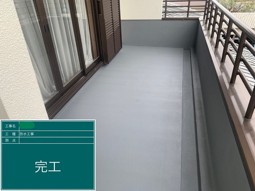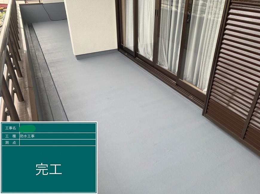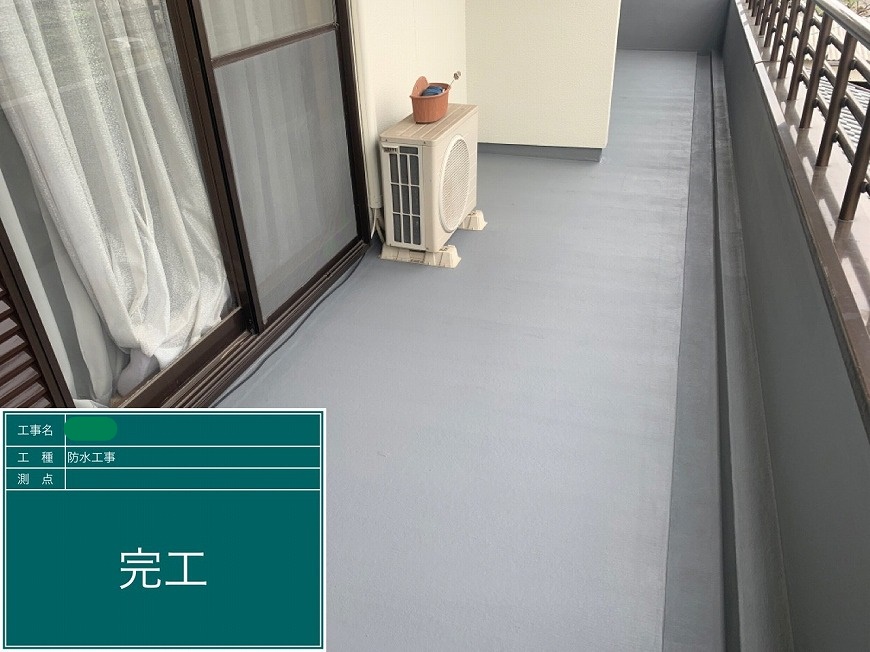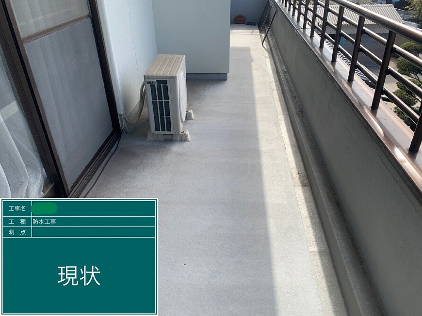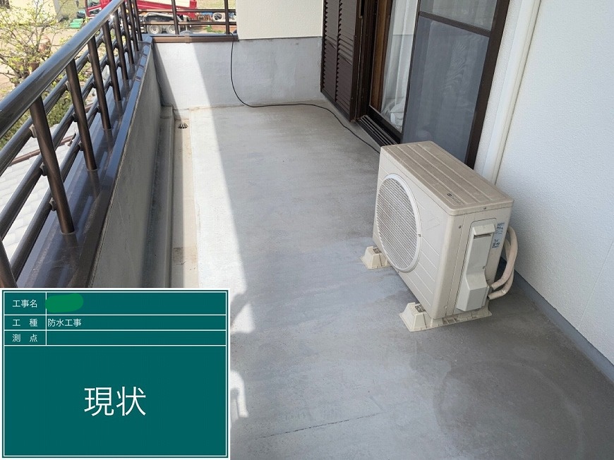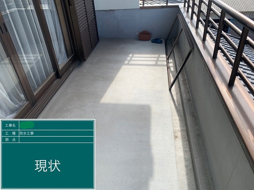 このお宅はベランダが2ヵ所あり、状態がいい方はビッグサン防水、状態が悪い方はウレタン防水を行いました。
