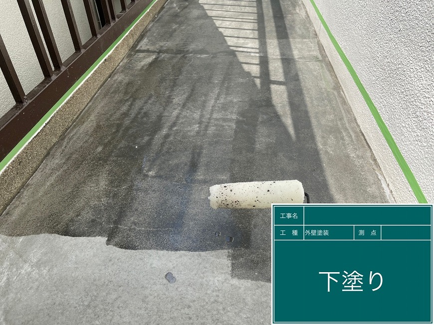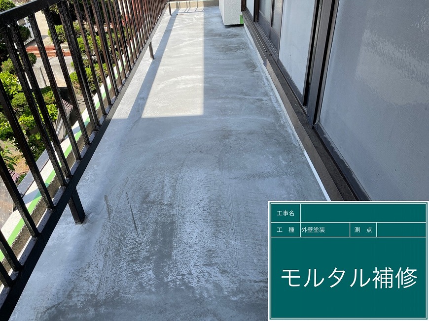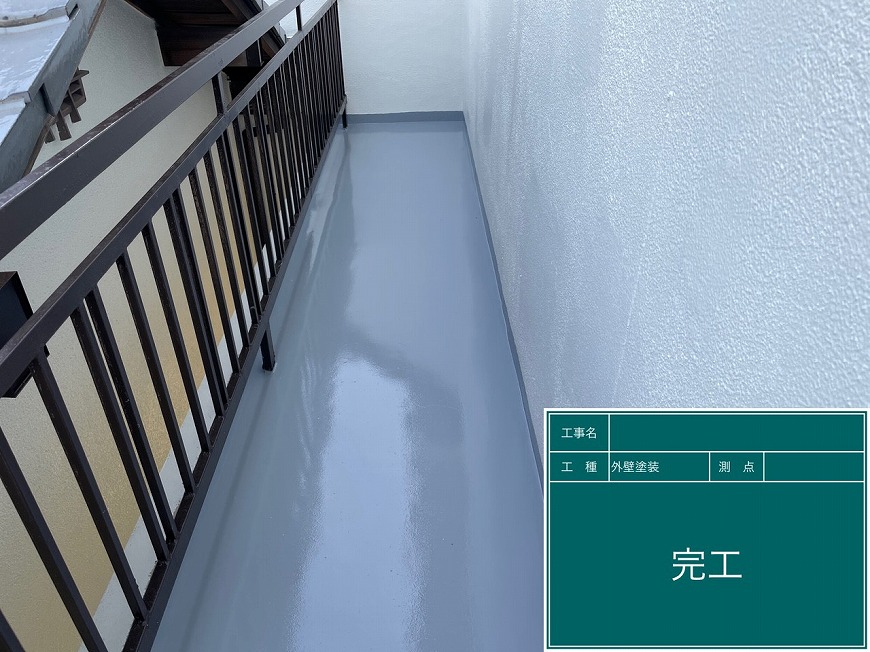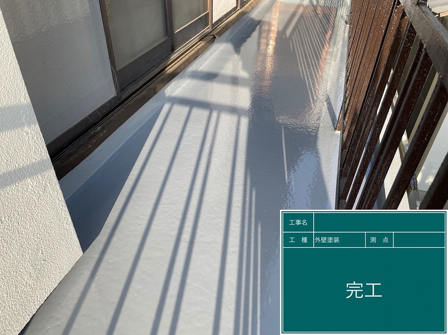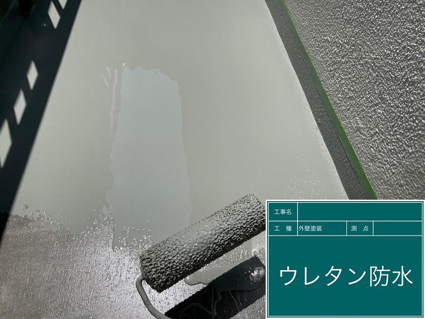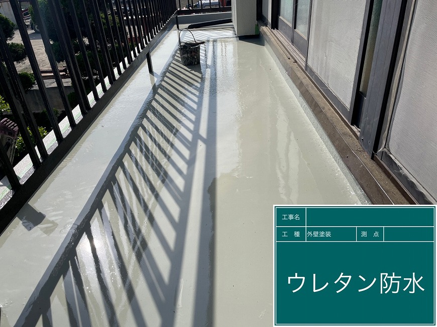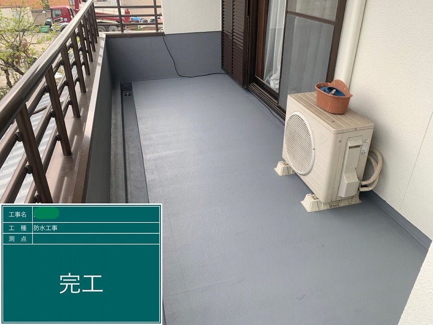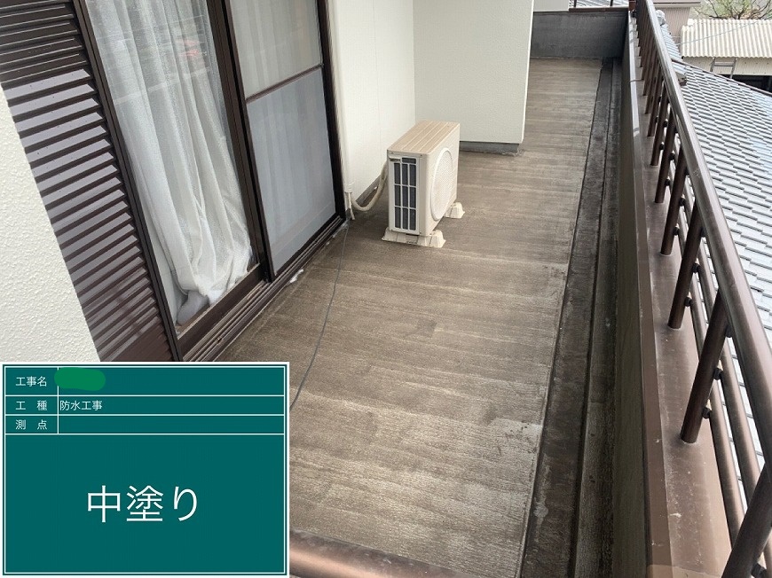 このお宅はベランダが2ヵ所あり、状態がいい方はビッグサン防水、状態が悪い方はウレタン防水を行いました。