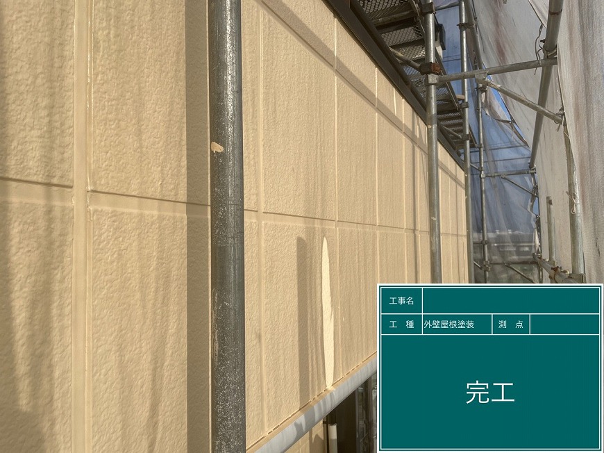 1.足場設置 2.高圧洗浄 3.屋根ケレン 4.養生 5.屋根塗装(3回塗り) 6.外壁塗装(3回塗り) 7.ベランダ防水 8.雨樋その他付帯塗装工事 9.足場解体