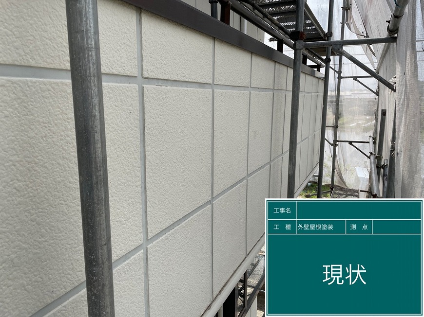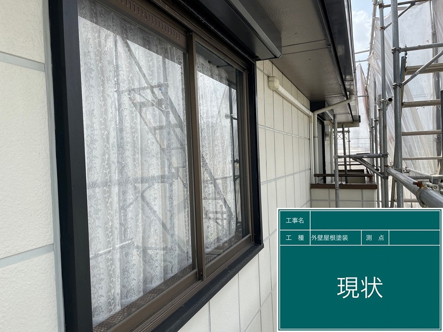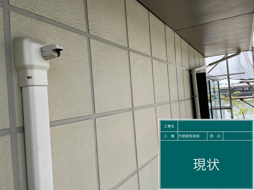外壁は塗膜がなく表面が剥がれていた。雨樋は乾いていた。