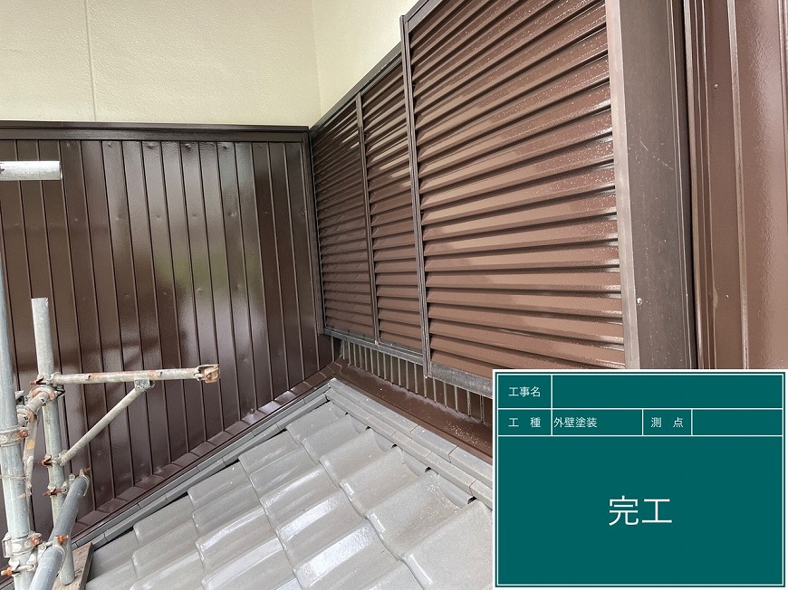 ケレン(鉄部の汚れや錆、旧塗膜を落とす作業)の後、3回塗りを行いました。