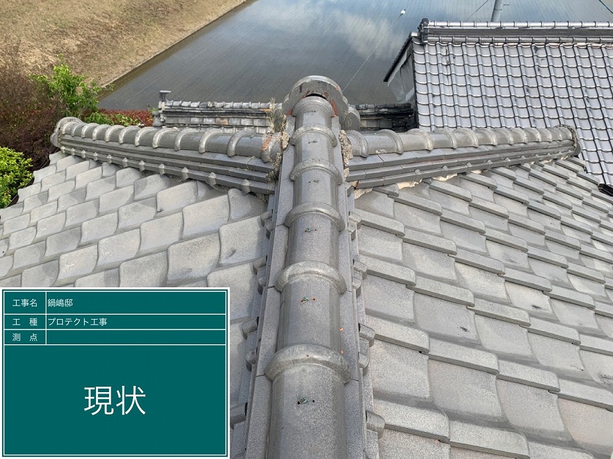 屋根は漆喰が数十か所取れており、瓦も数枚落ちていて、割れもありました。