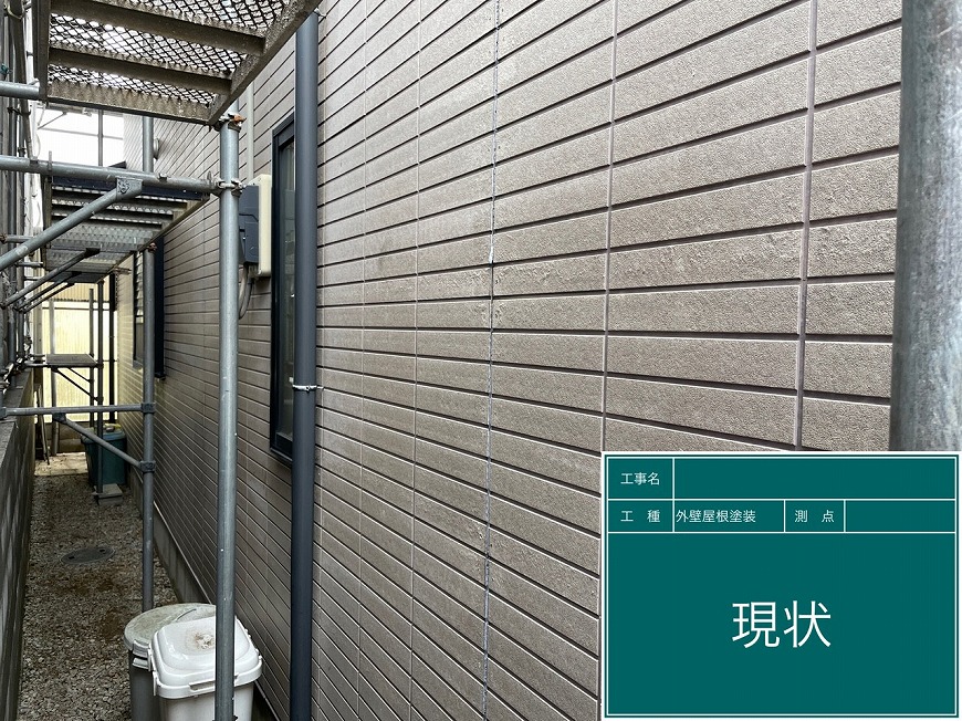 外壁は塗膜がなく、目地も取れていて下地が見えていました。