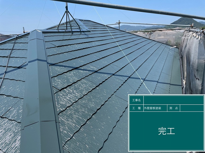 香川県木田郡三木町で屋根・外壁塗装工事、ベランダ防水工事、太陽熱温水器撤去を行いました