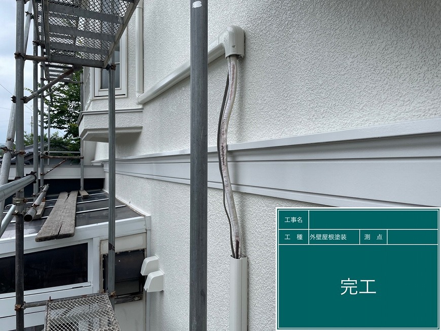 1.不用品処分 2.足場設置 3.高圧洗浄 4.屋根塗装工事(3回塗り) 5.外壁塗装(3回塗り) 6.雨樋その他付帯工事 7.足場解体 8.ベランダ防水工事