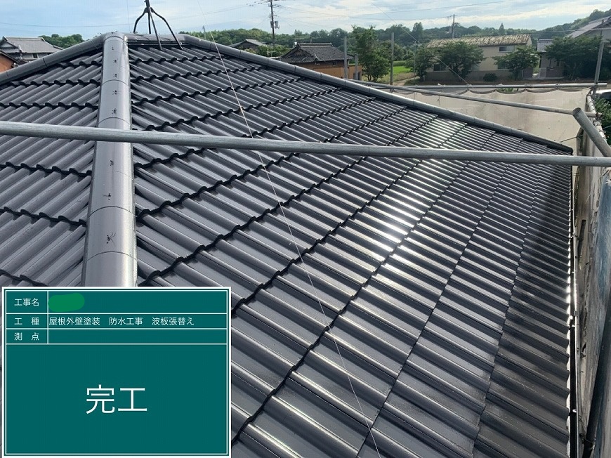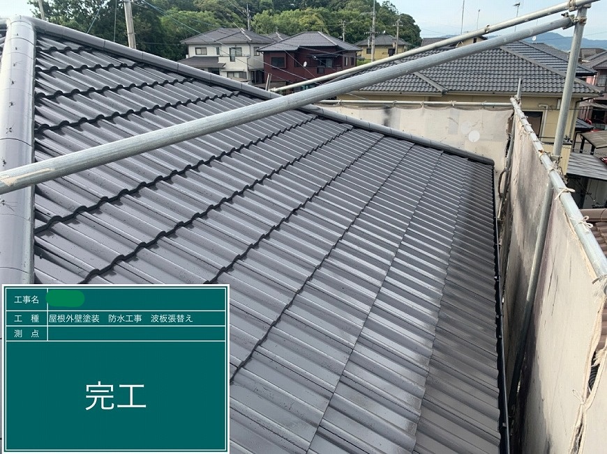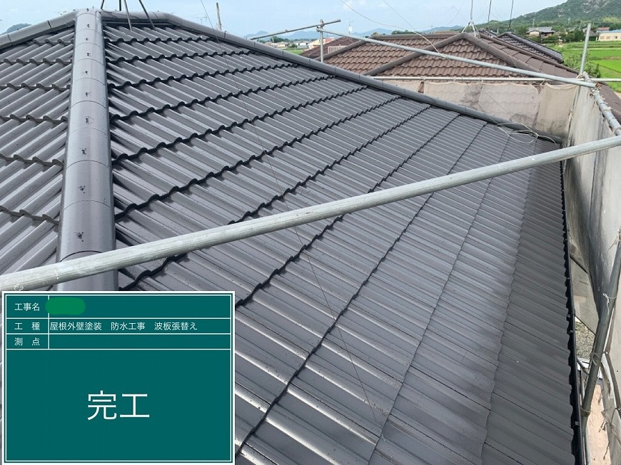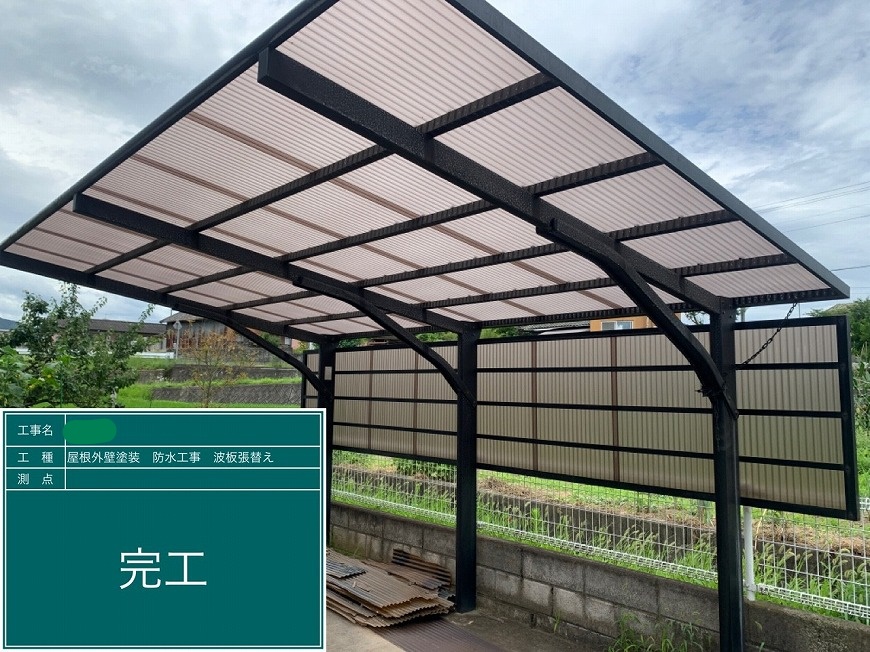 香川県木田郡三木町で屋根・外壁塗装工事、ベランダ防水工事、波板張替え工事を行いました