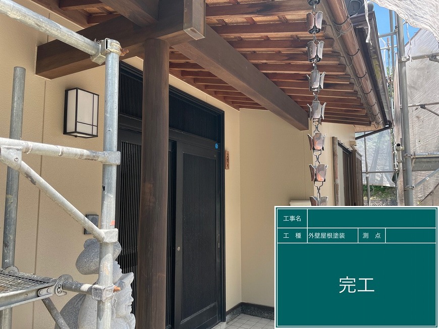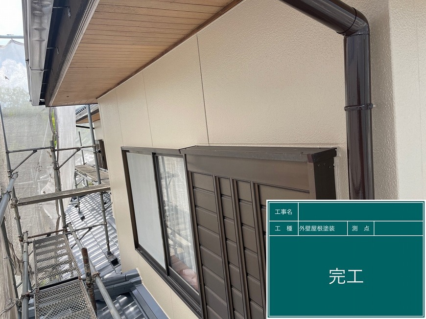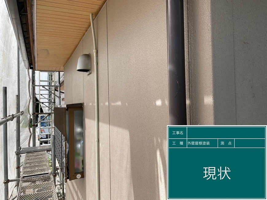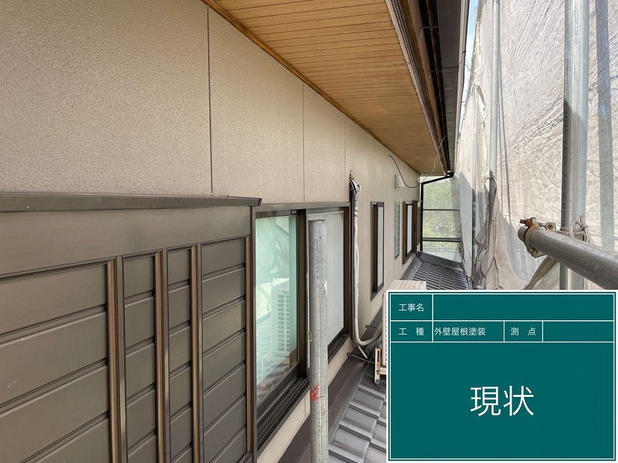外壁は塗膜がなくなりかけていた。 屋根は漆喰が取れていて、冠瓦(頂上)のパーツがグラついていた。木部は乾いていた。雨樋は塗膜がなくなっていた。
