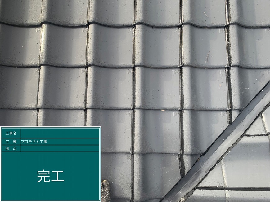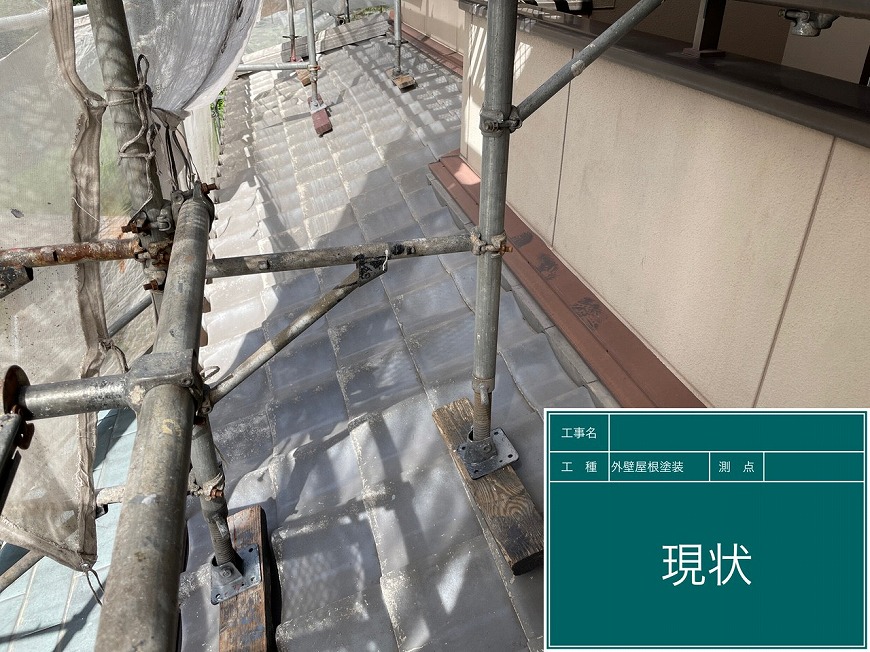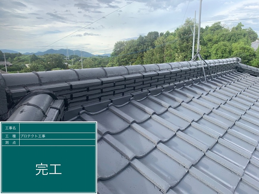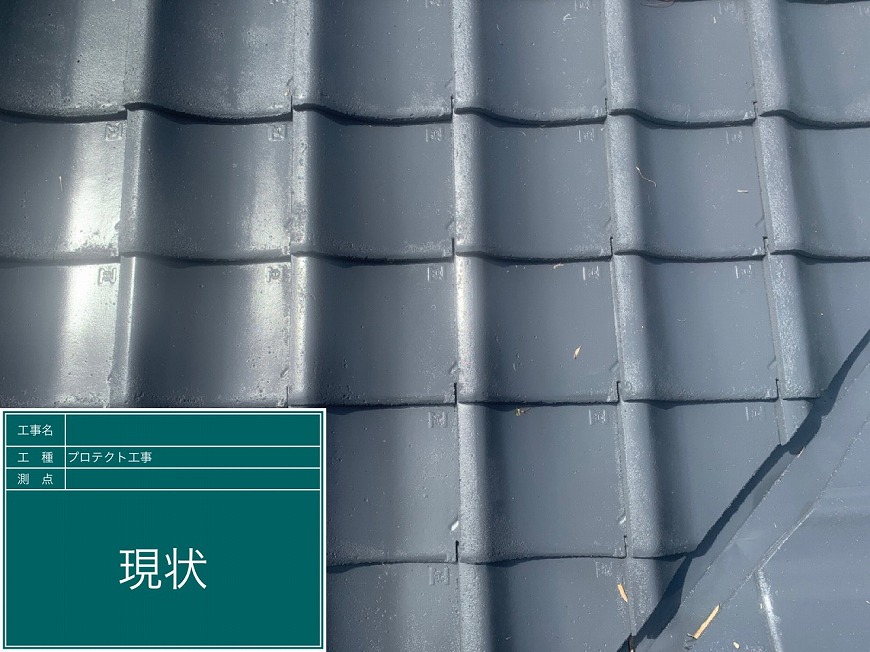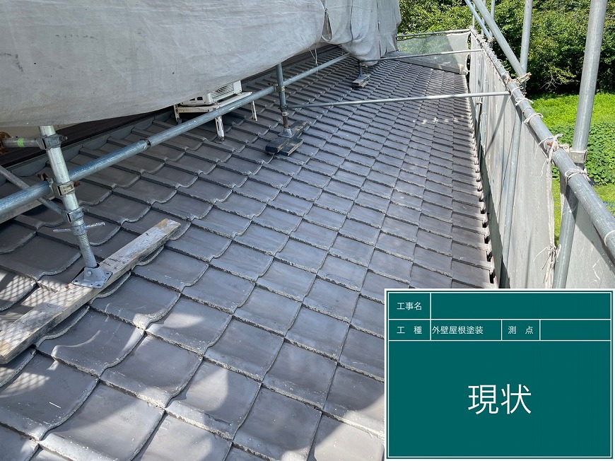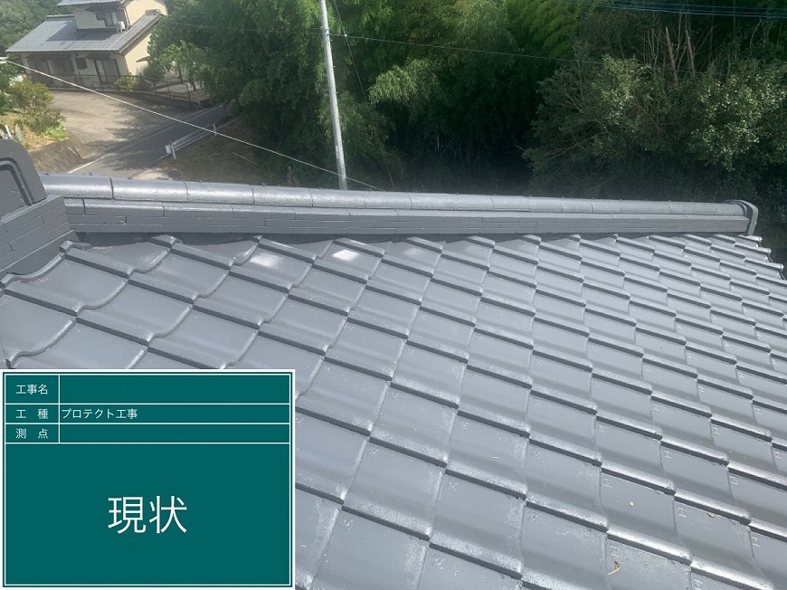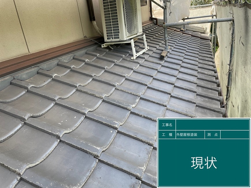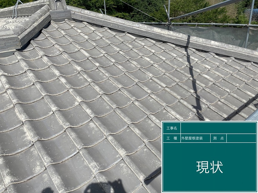 屋根は塗膜がなくなっていた。屋根は漆喰が取れていて、冠瓦(頂上)のパーツがグラついていた。木部は乾いていた。雨樋は塗膜がなくなっていた。
