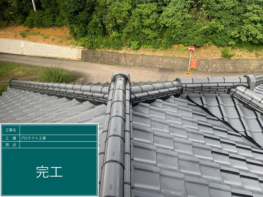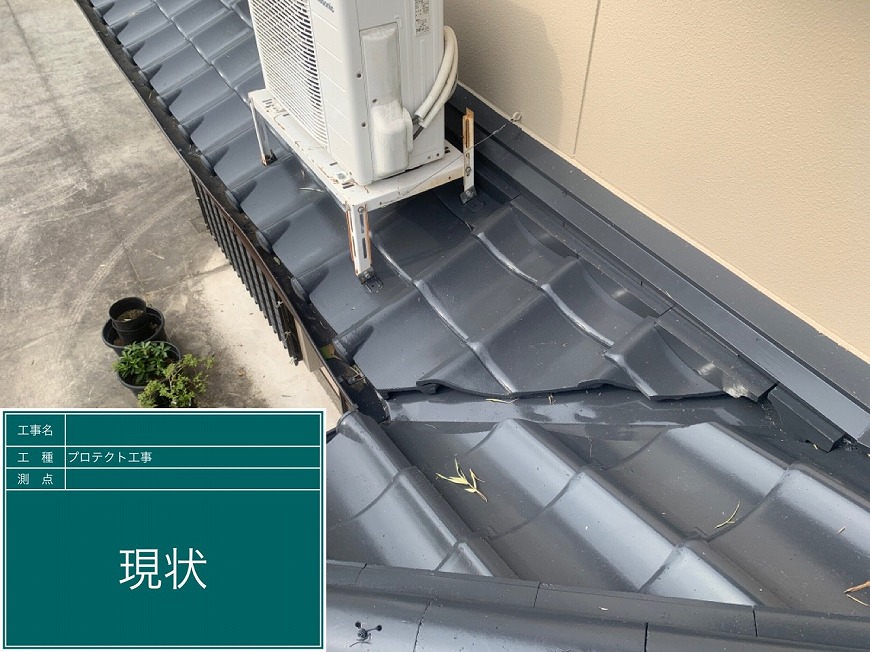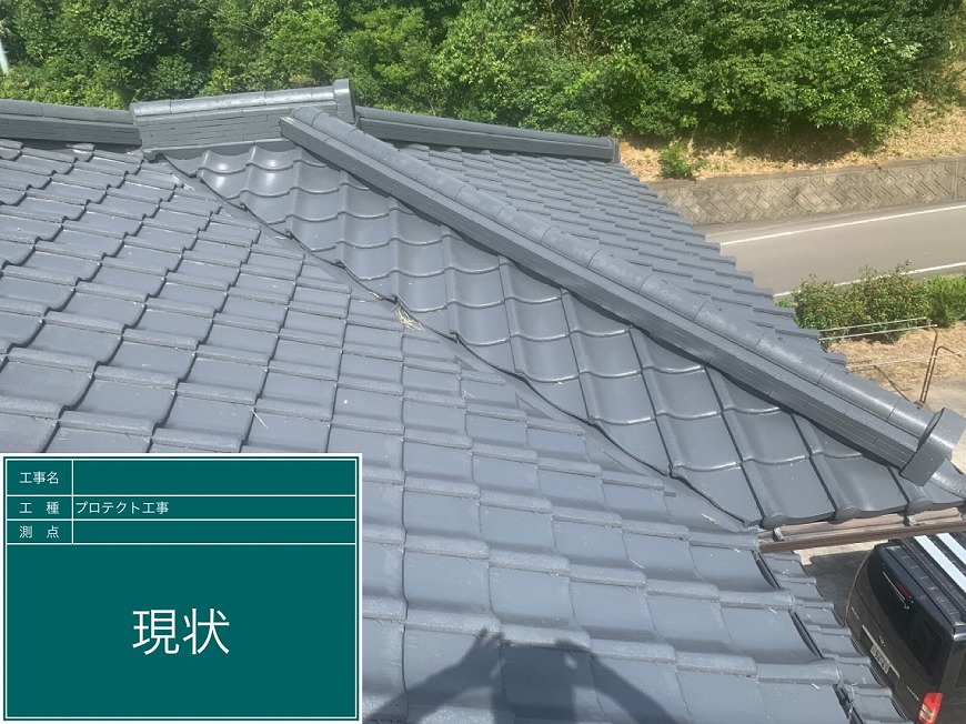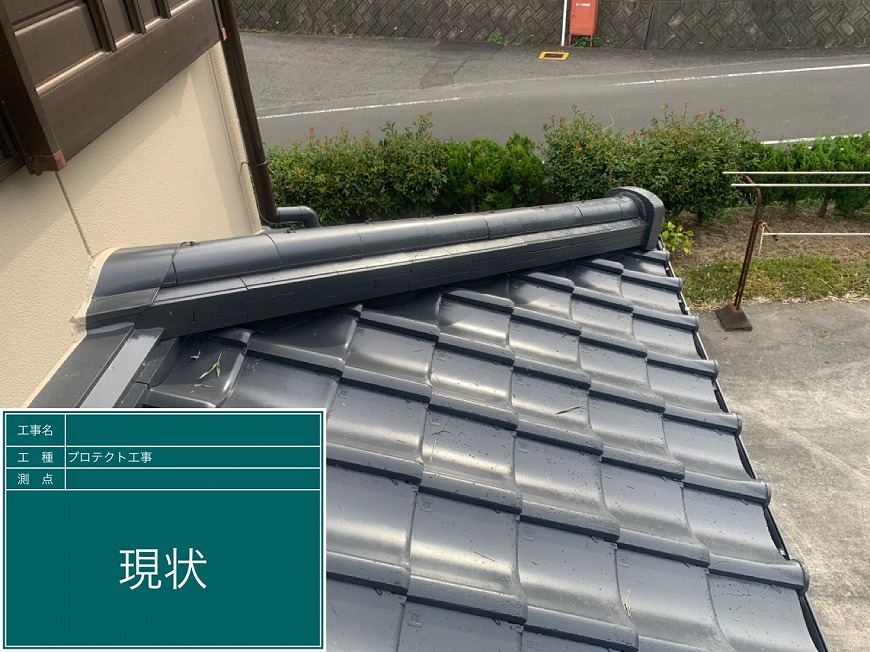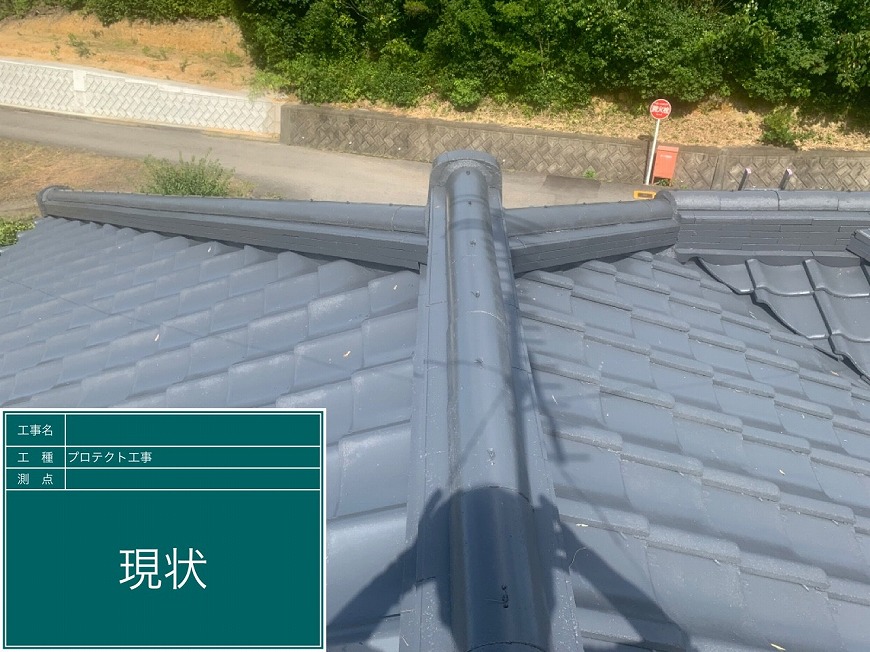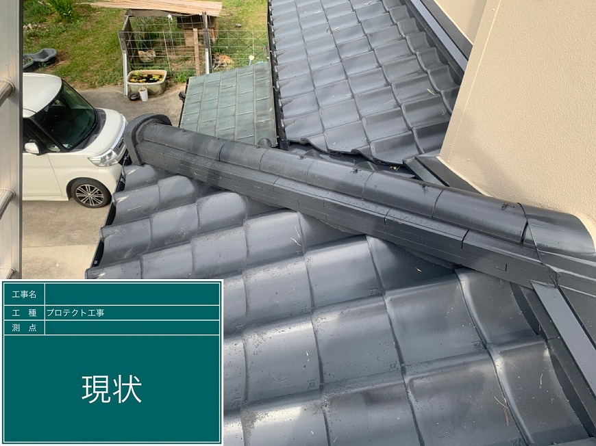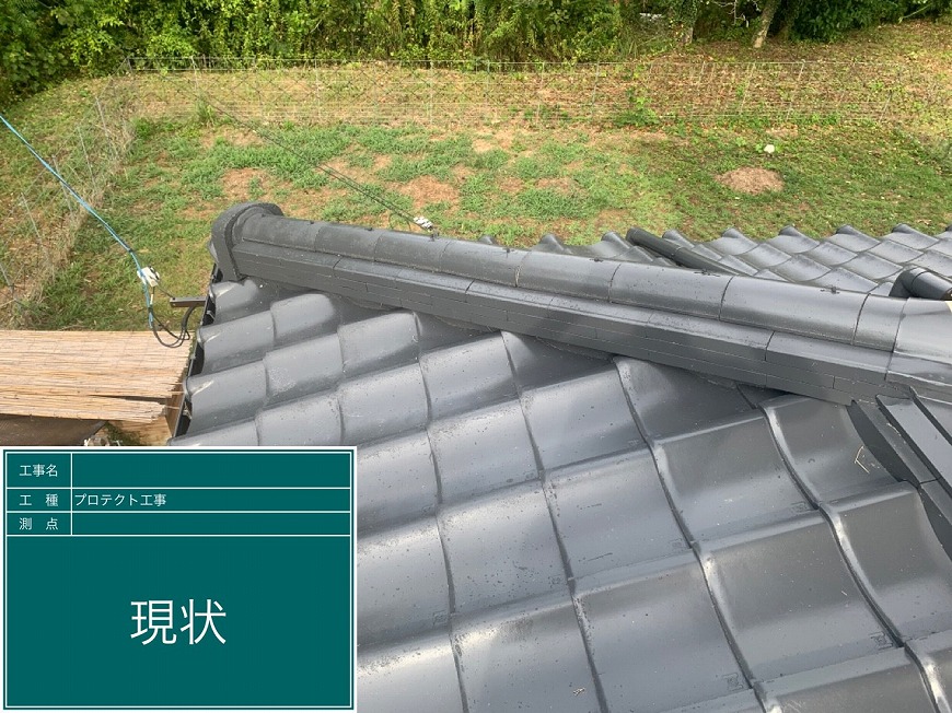 屋根は漆喰が取れていて、冠瓦(頂上)のパーツがグラついていました。