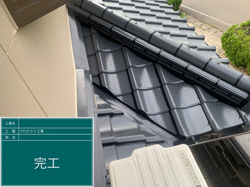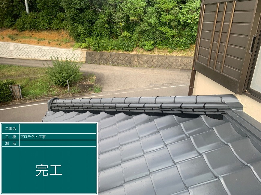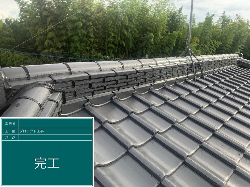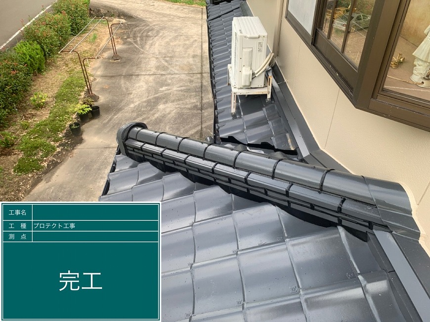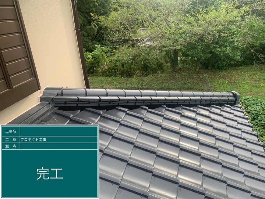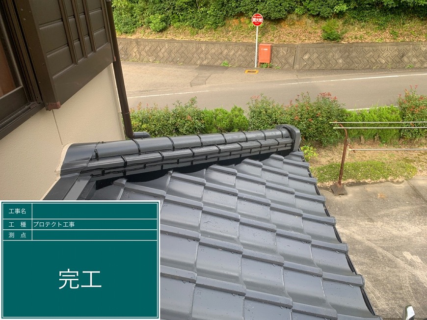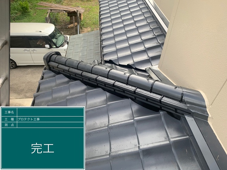 屋根は漆喰が取れていて、冠瓦(頂上)のパーツがグラついていました。