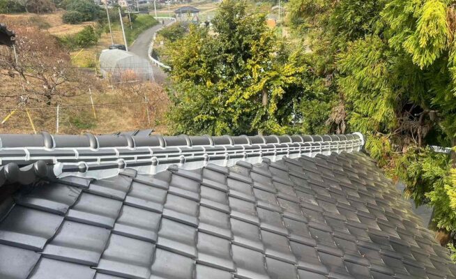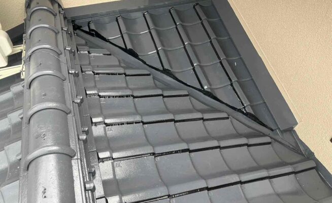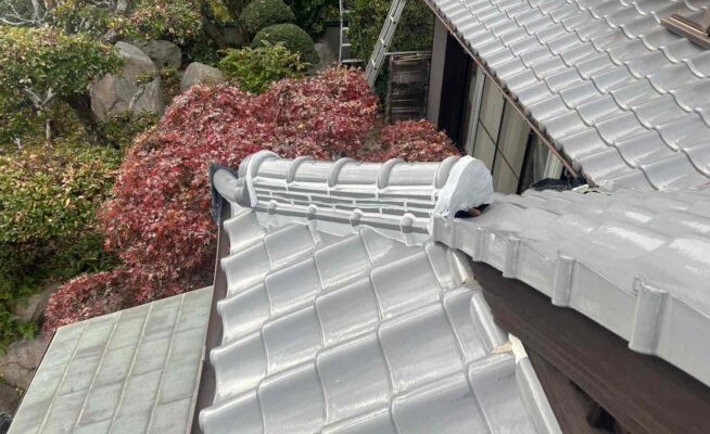 ご相談 経年劣化により瓦の漆喰等がとれており、雨漏りが発生していた。工事内容 1.棟プロテクト雨漏り工事 2.谷プロテクト雨漏り工事 3.完工