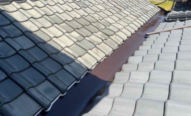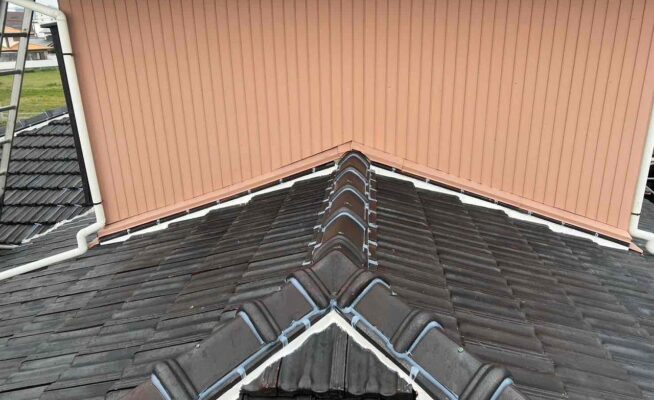 ご相談 瓦がずれている箇所や穴があいている箇所があり、雨漏りしていた。工事内容 1.谷板金塗装 2.谷プロテクト工事 3.平地瓦プロテクト工事