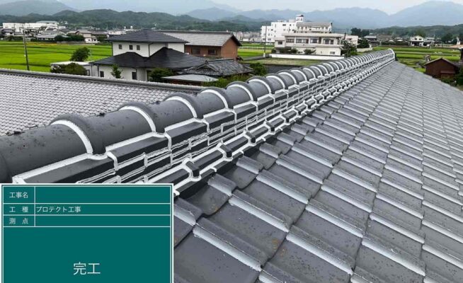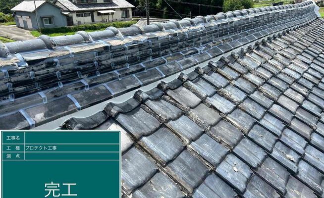 ご相談 瓦のズレや漆喰部分の劣化により雨水が浸入し、雨漏りしていた。工事内容 1.瓦プロテクト工事 2.完工