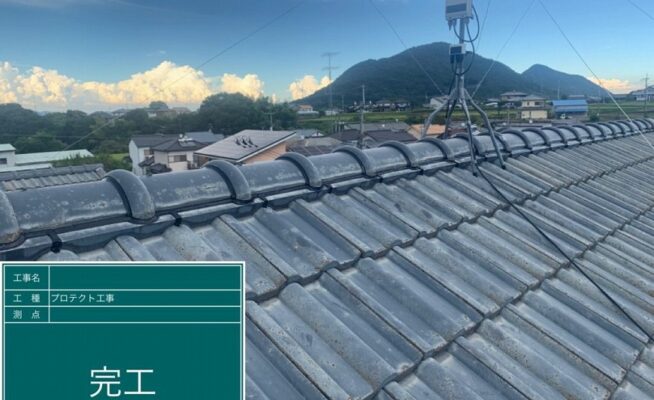 ご相談 屋根は漆喰が取れており、鬼瓦もぐらついていた。工事内容 1.屋根プロテクト工事