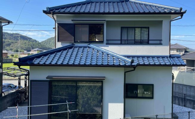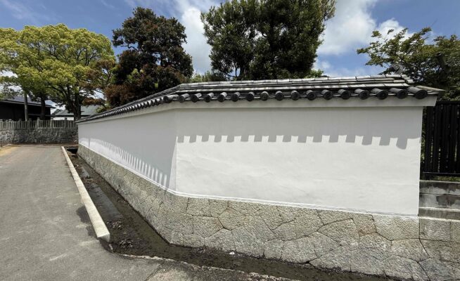 ご相談 経年劣化により塗膜が薄くなっているところと、漆喰壁の割れが多数あった工事内容 1.高圧洗浄 2.クラック補修 3.下塗り 4.中塗り 5.上塗り 6.完工