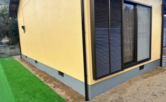 ご相談 基礎が割れていた。工事内容 1.高圧洗浄 2.割れ補修・補強 3.パワーアラスト 4.トップコート 5.完工