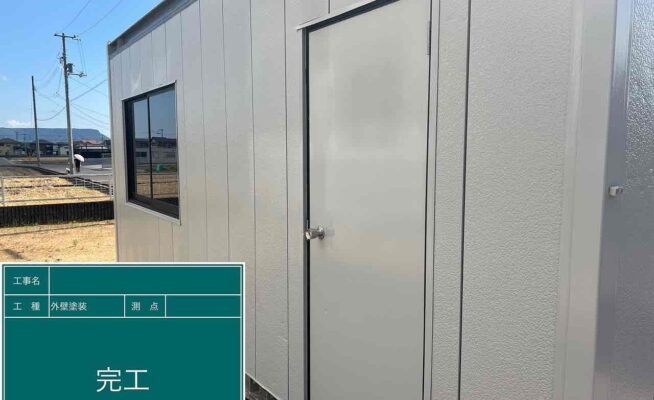 ご相談 倉庫が経年劣化によりチョーキングと錆が出てきていた。工事内容 1.ケレン 2.錆止め 3.中塗り 4.上塗り 5.完工