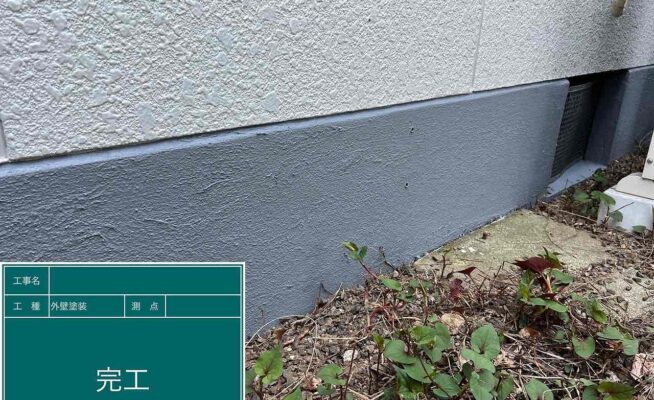 ご相談 基礎が割れており、表面が弱くなっていた工事内容 1.ケレン 2.養生 3.パワーアラストFL塗装 4.トップコート塗装 5.完工
