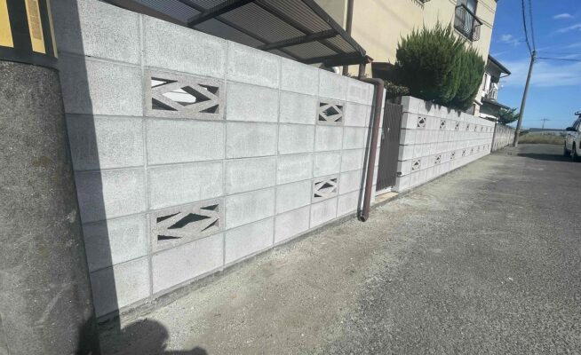 ご相談 ブロック塀が古くなって倒れかかっていた工事内容 1.ブロック塀撤去 2.鉄筋設置 3.ブロック塀新設