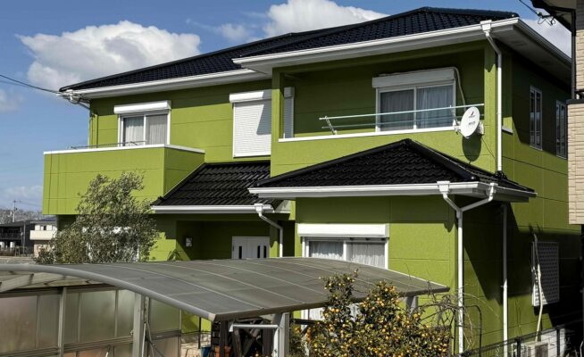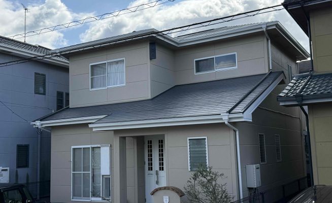 ご相談 屋根の塗膜が薄くなっており、防水機能が弱まっていた。工事内容 1.足場設置 2.高圧洗浄 3.屋根塗装3回塗り 4.足場解体 5.完工