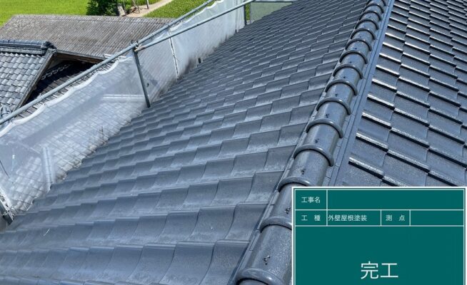 ご相談 屋根は塗膜がなく、割れはなかったもののパキパキに乾いていた。破風の木部の塗膜がなく、乾いていた。工事内容 1.足場設置 2.高圧洗浄 3.養生 4.屋根塗装工事(3回塗り) 5.外壁塗装工事(3回塗り) 6.雨樋その他付帯塗装工事 7.足場解体