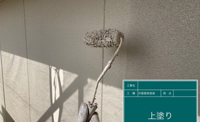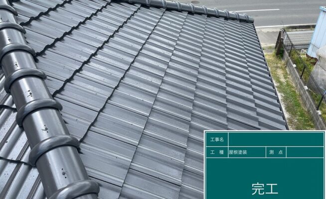 ご相談 屋根は塗膜がなく、クラックが数ヵ所あった工事内容 1.足場設置 2.高圧洗浄 3.養生 4.クラック補修(屋根・外壁) 5.屋根塗装(3回塗り) 6.外壁塗装工事(3回塗り) 7.雨樋等付帯工事 8.納屋の屋根塗装(3回塗り) 9.足場解体