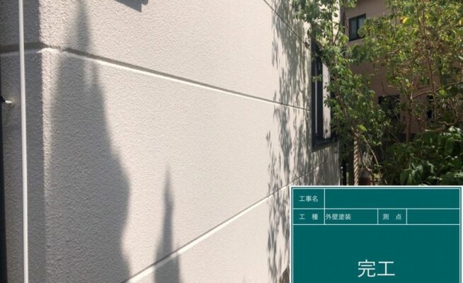 ご相談 外壁は塗膜がなく、チョーキングが起きていた。 ベランダは防水機能が切れており、乾いてクラックが入っていた。工事内容 1.足場設置 2.屋根・外壁の高圧洗浄 3.養生 4.屋根塗装(3回塗り) 5.外壁塗装(3回塗り) 6.ベランダ防水(2回塗り) 7.足場解体 8.ゴミ撤去
