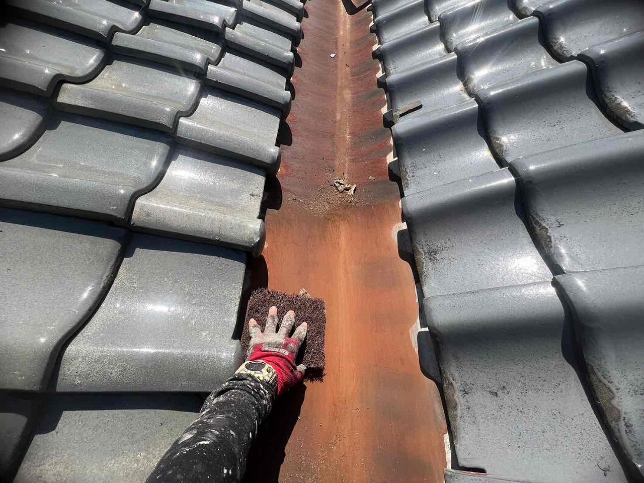 1.谷板金塗装 2.谷プロテクト工事 3.平地瓦プロテクト工事