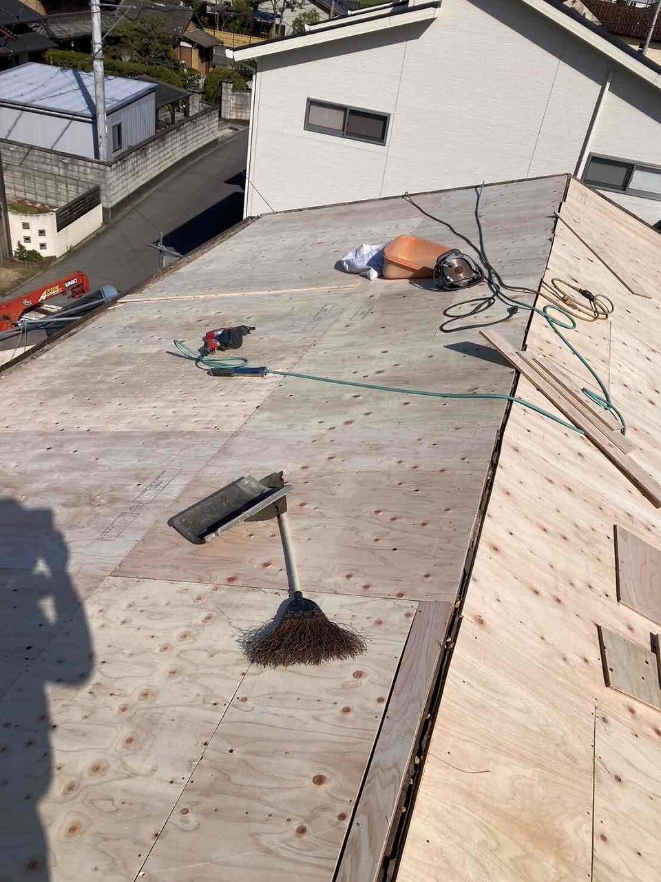1.足場設置 2.既存瓦撤去 3.コンパネ 4.防水シート 5.瓦貼り付け 6.完工