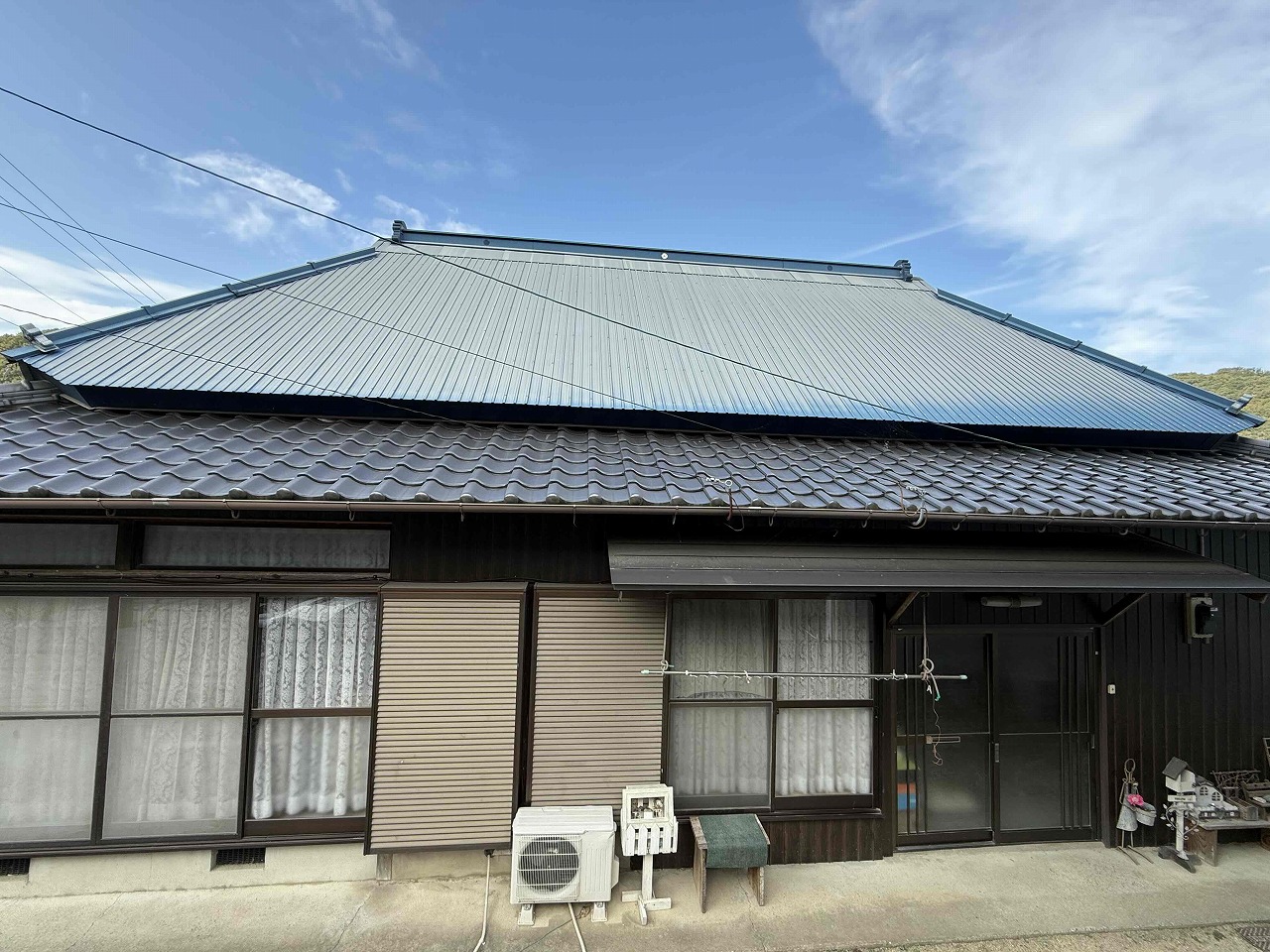 現状は塗膜が薄くなっており、錆が出てきていた部分があったため、錆止めを含む3回塗りをしっかりと行い、新品の屋根のように綺麗になりました!