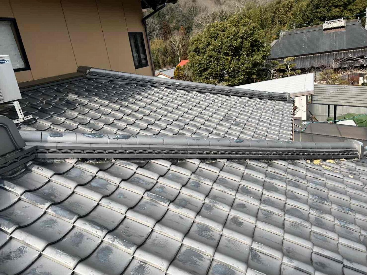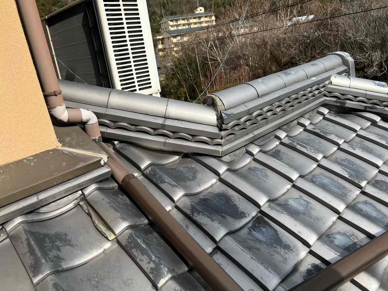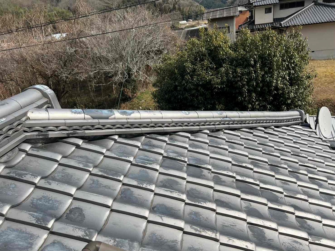 劣化した漆喰部分をシリコン材を使い、専門の職人にて施工させていただきました。この工事を行うことにより、瓦の棟崩れの防止や雨水の浸入(雨漏り)を防ぐことができます!