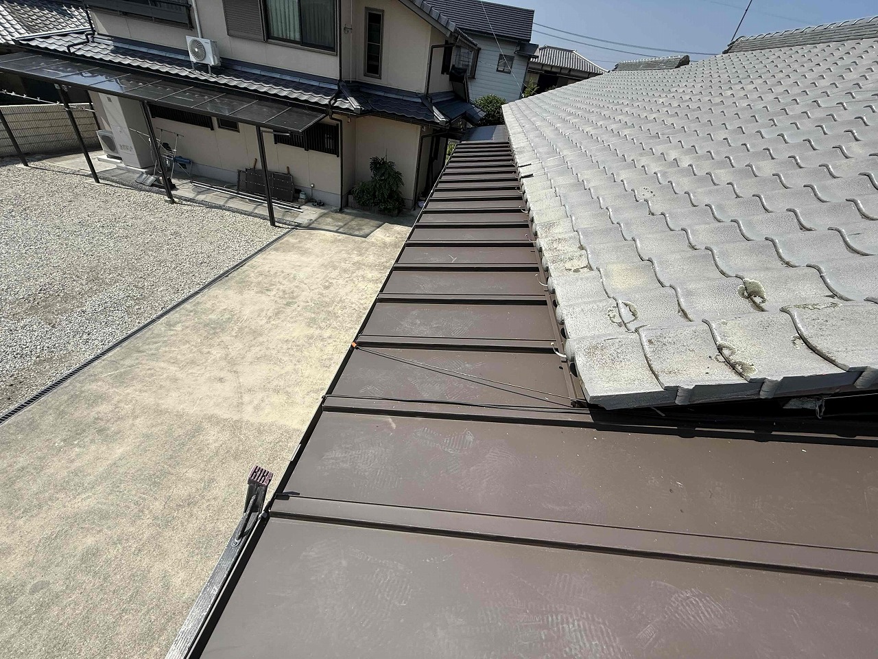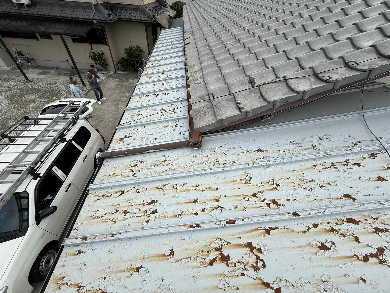 経年劣化により錆が出ていた板金屋根の上にガルバ屋根材をカバー工法しました。