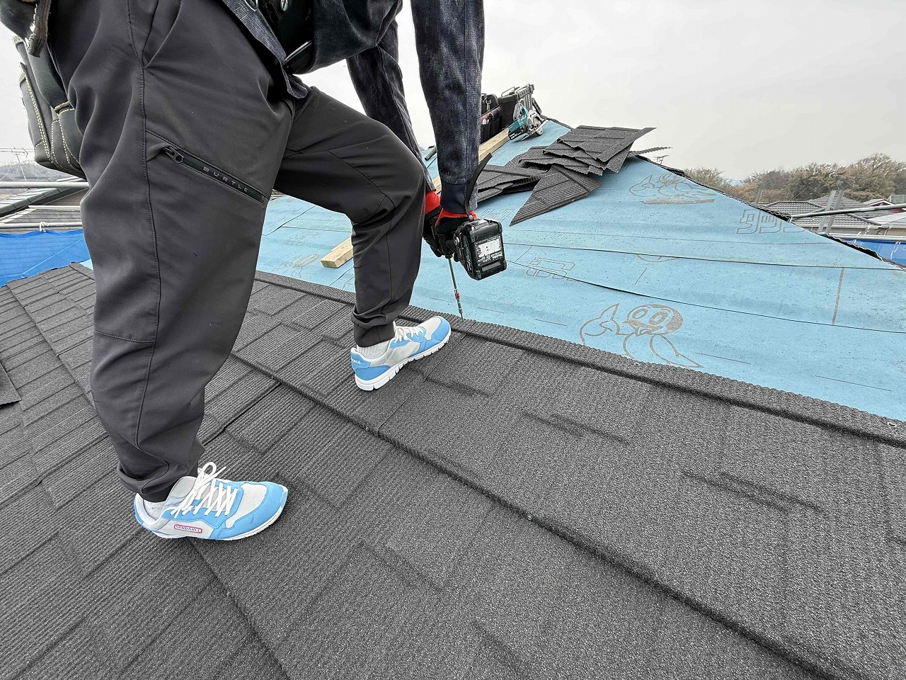 ルーフィング(防水シート)→DECRA屋根施工中