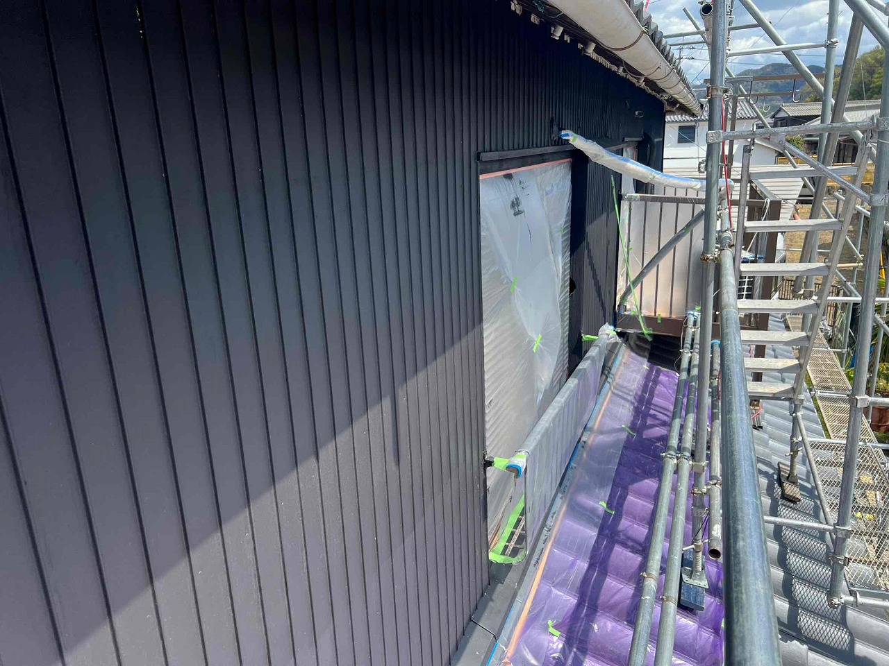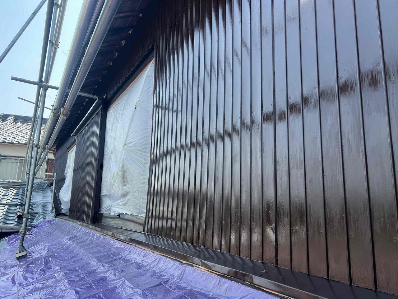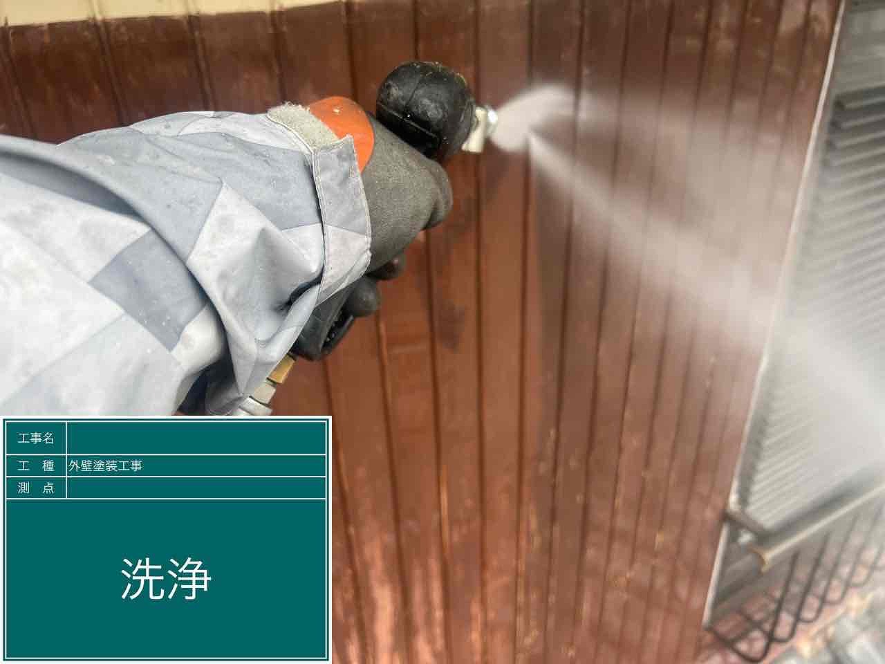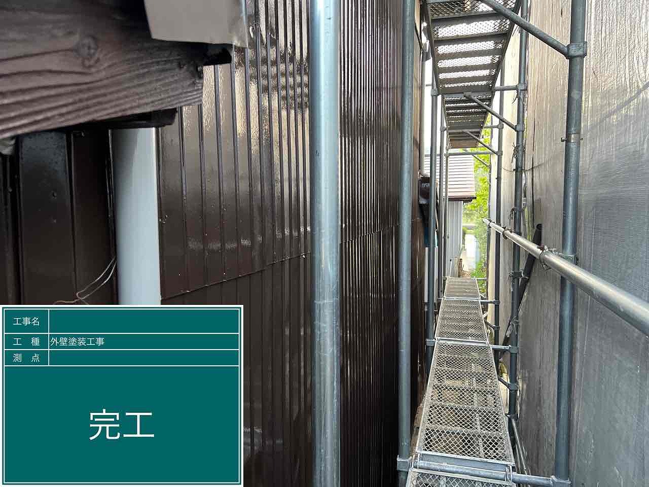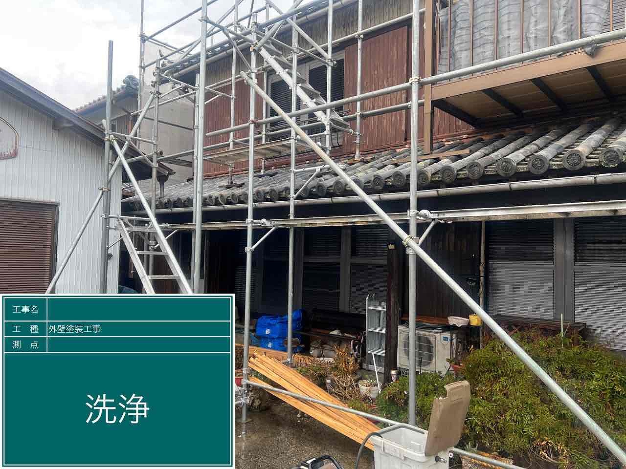 1.足場設置 2.高圧洗浄 3.養生 4.外壁塗装3回塗り 5足場解体 6.完工