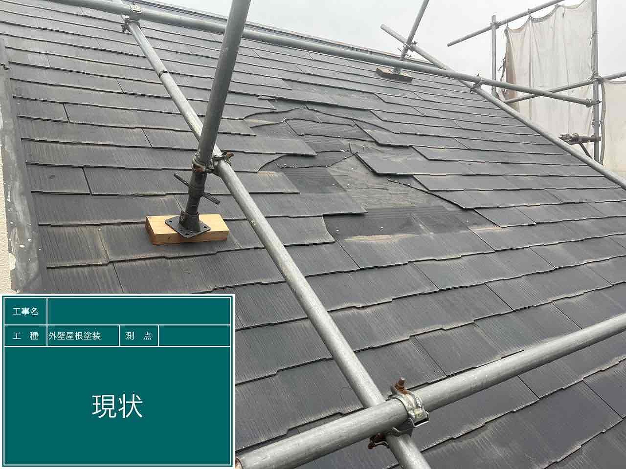 現状は瓦が飛んで飛散していましたが、撤去し上から板金屋根(ガルバリウム銅板)を貼り付ける施行方法を行いました。