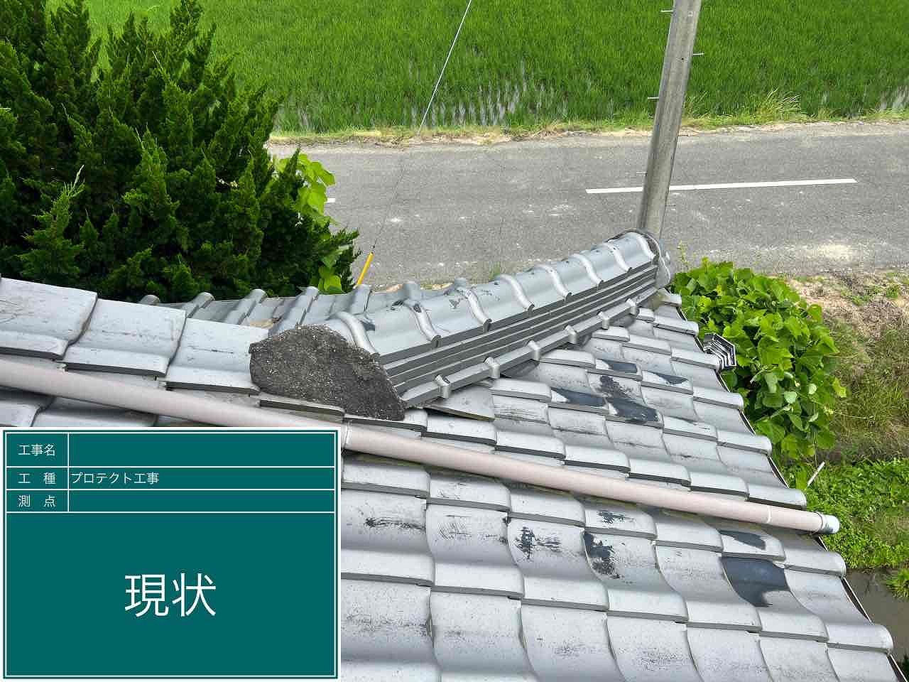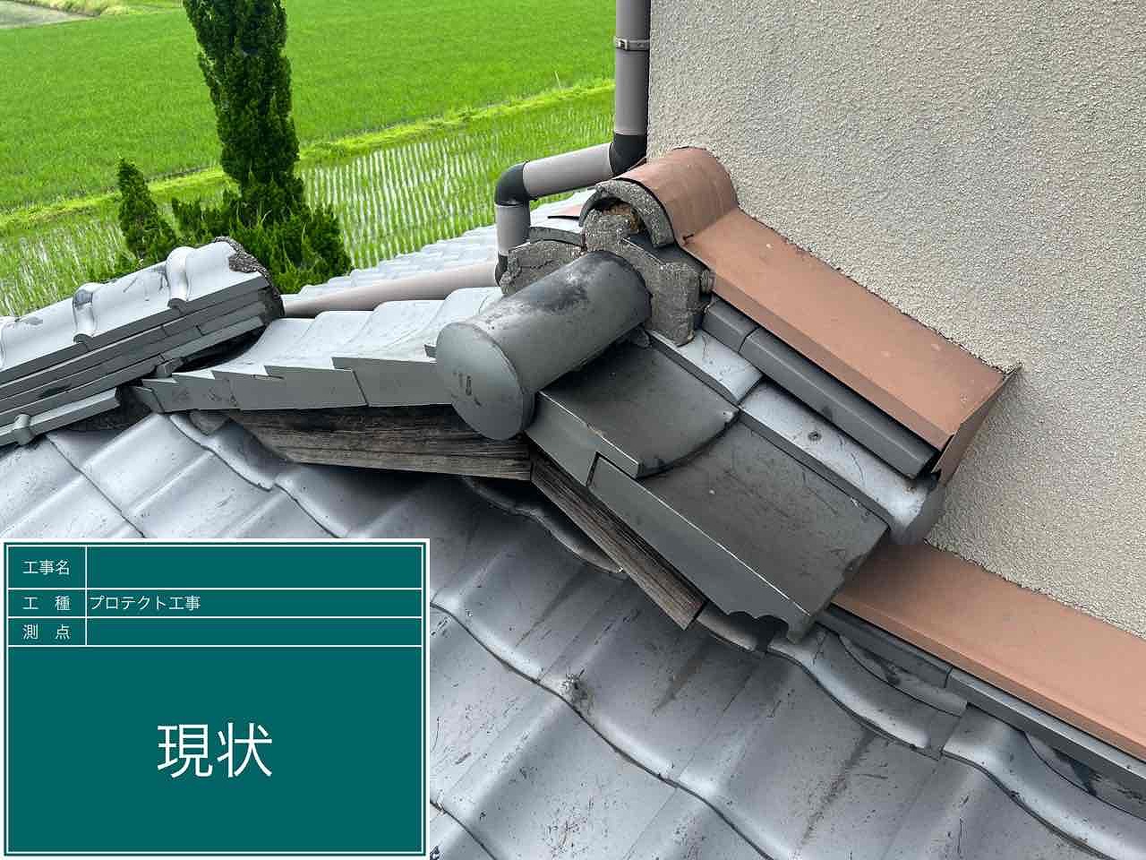 現在、雨漏りはしておりませんが、至る所の瓦がずれ落ちていたり、漆喰が劣化して剥がれている箇所が多数あったため、今回瓦の補修工事を行うこととなりました。