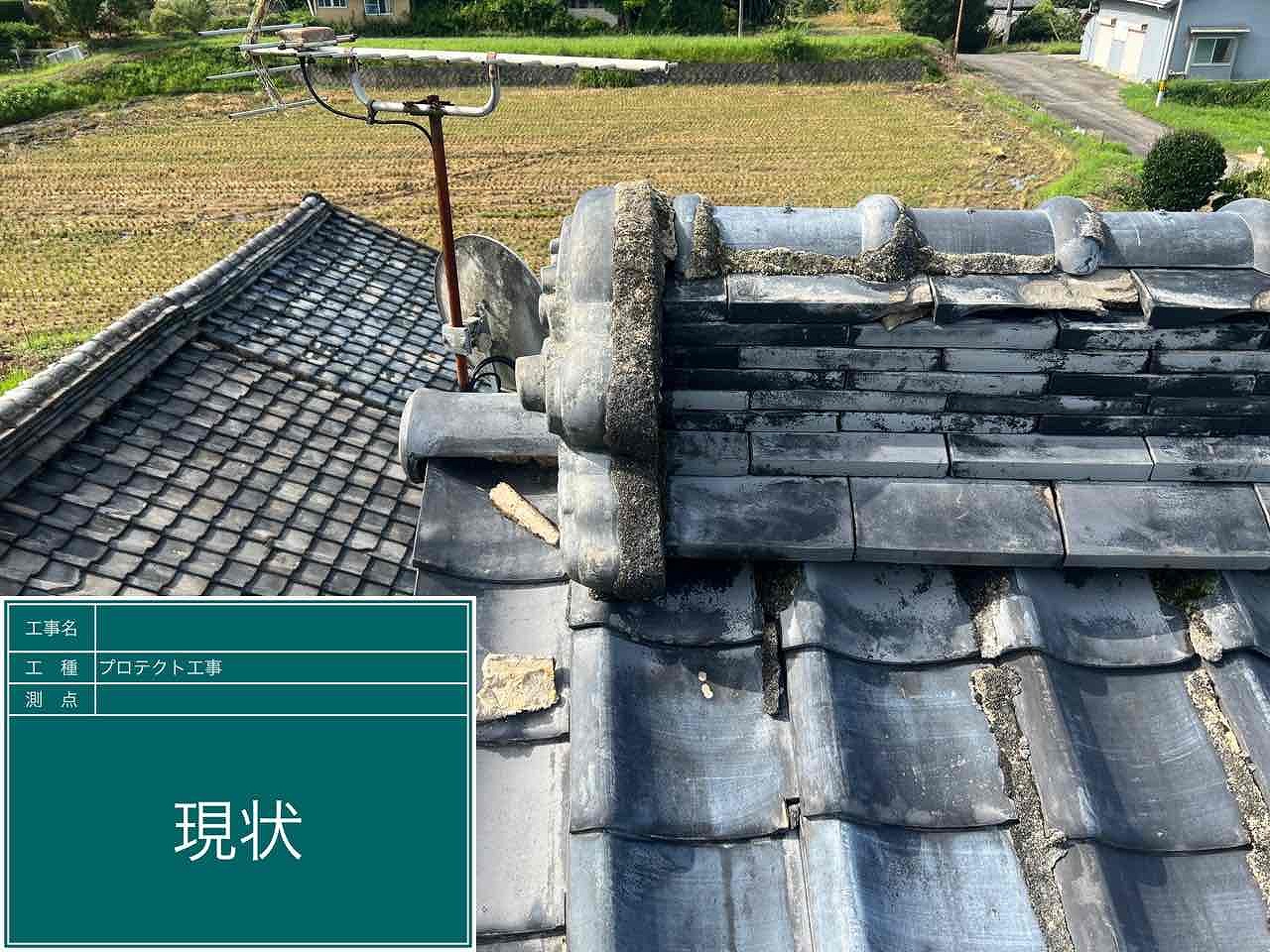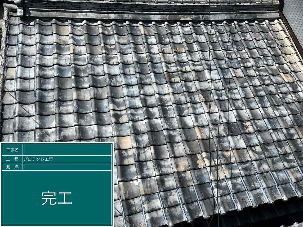 こちらのお家は雨漏りしており、この工事により瓦のズレを直したり既存の漆喰部分を撤去しシリコンにて固定し雨水の侵入や瓦のズレを防止しています。