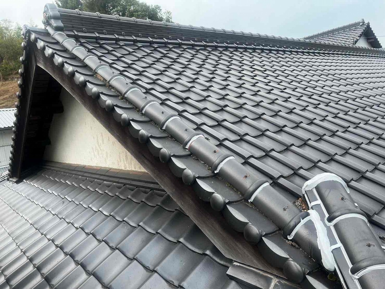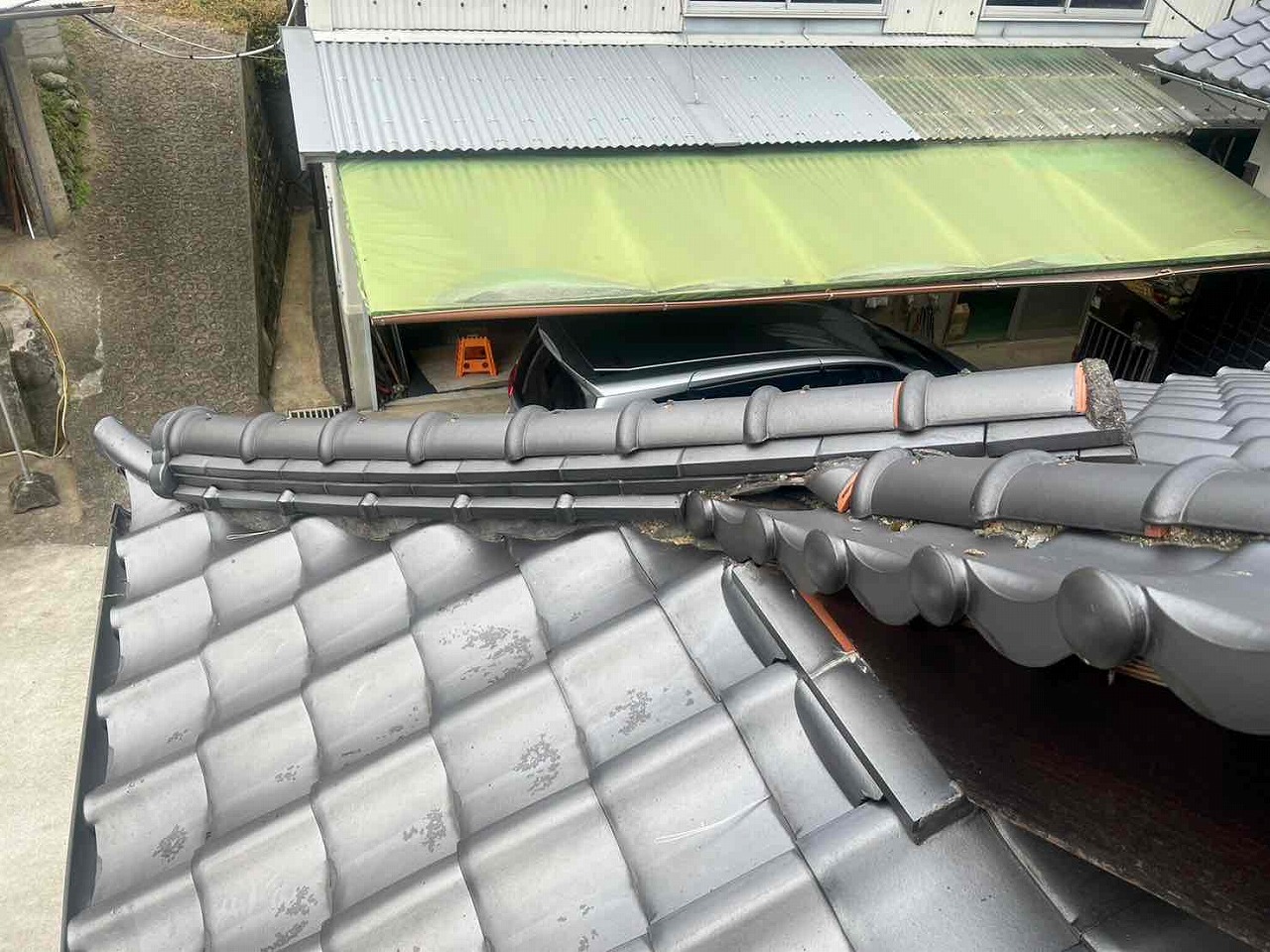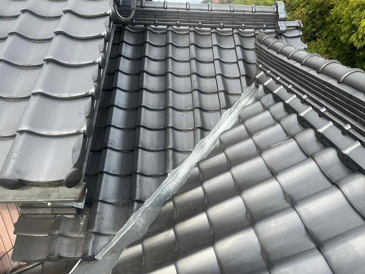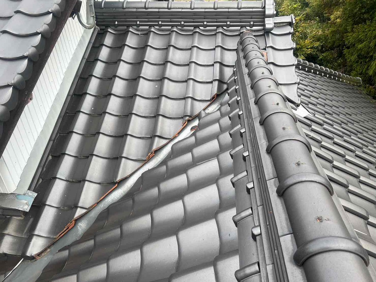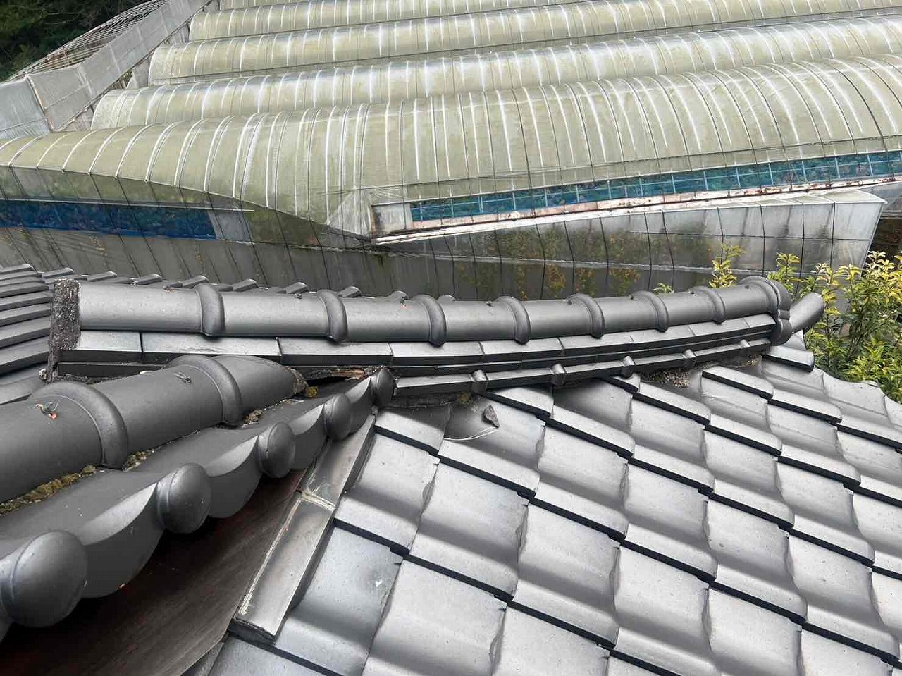 屋根の漆喰が劣化し、とれていた。