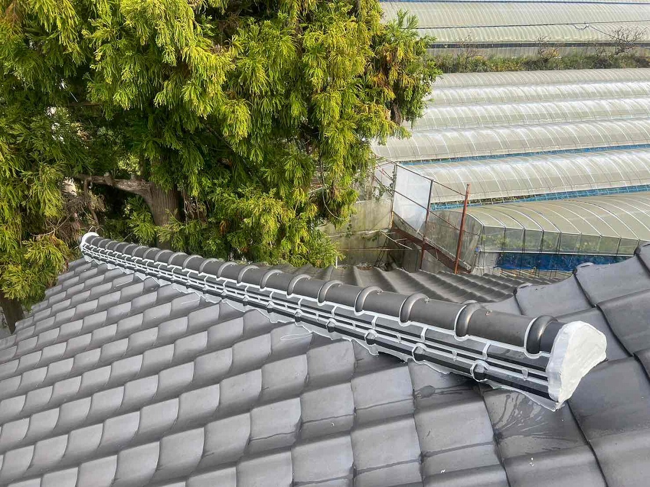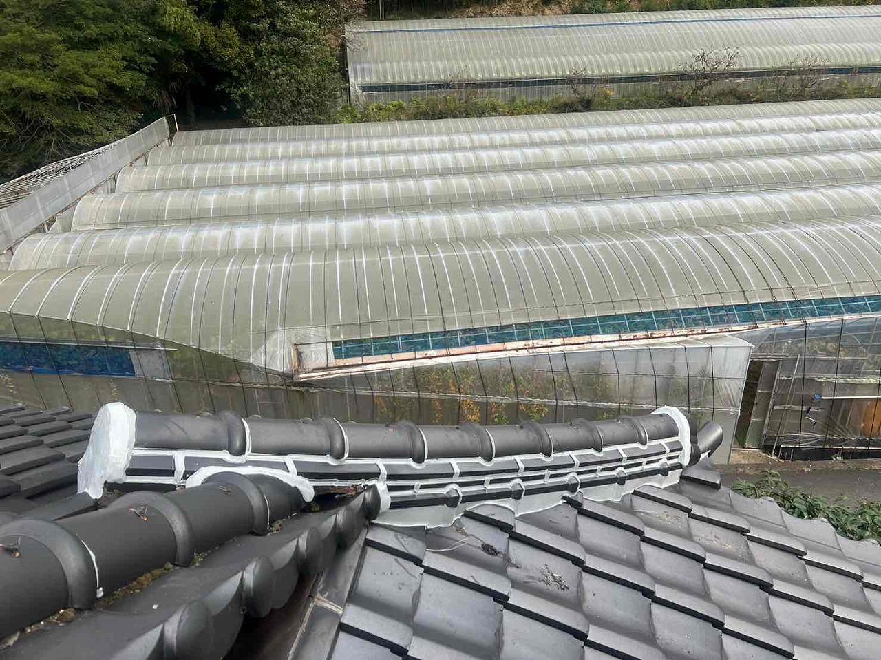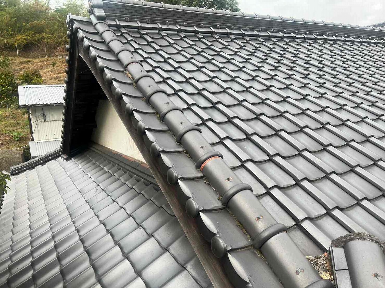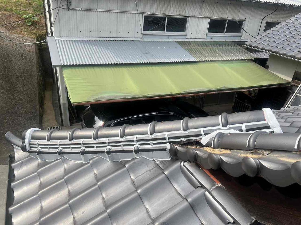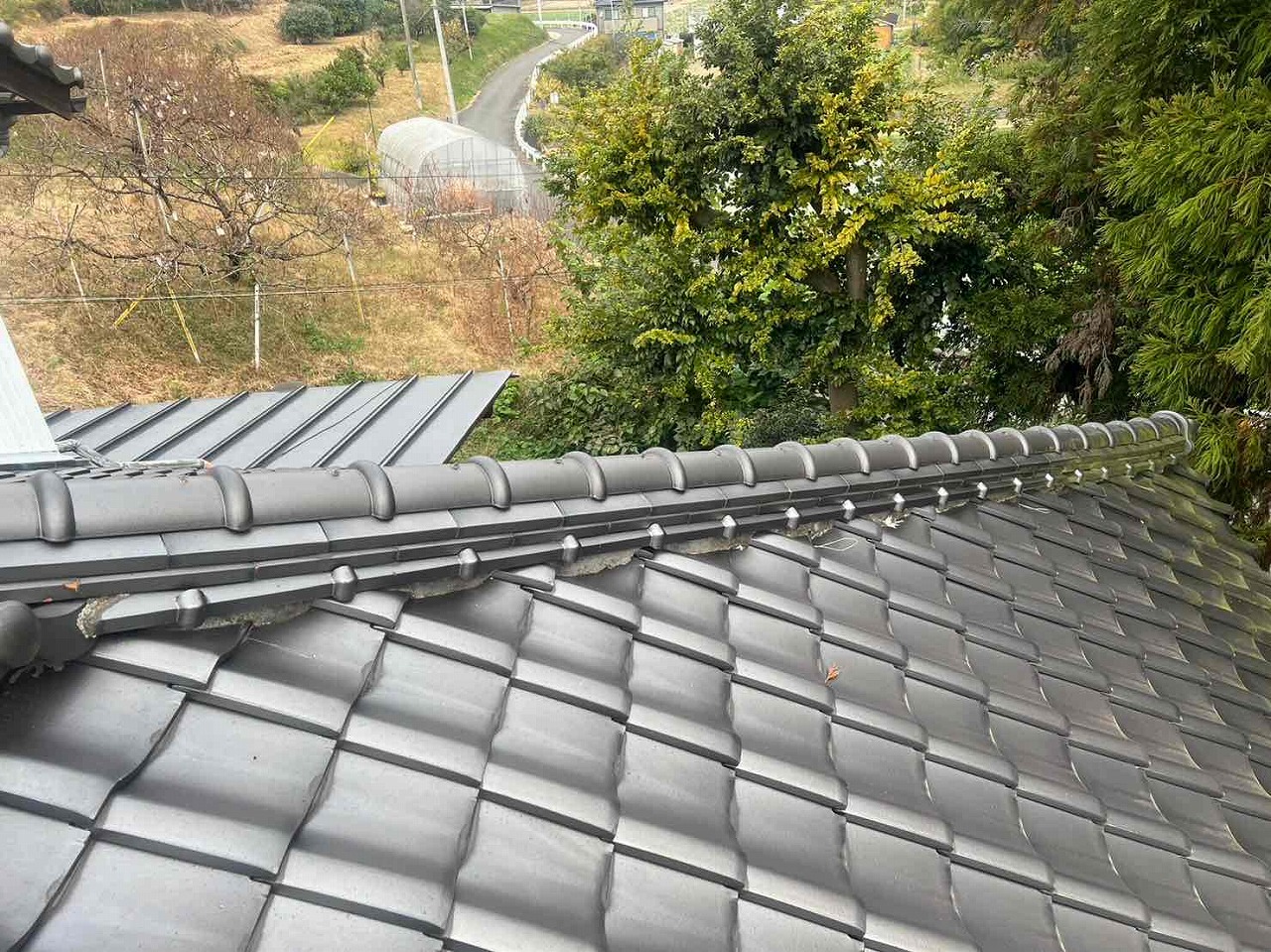 屋根の漆喰が劣化し、とれていた。
