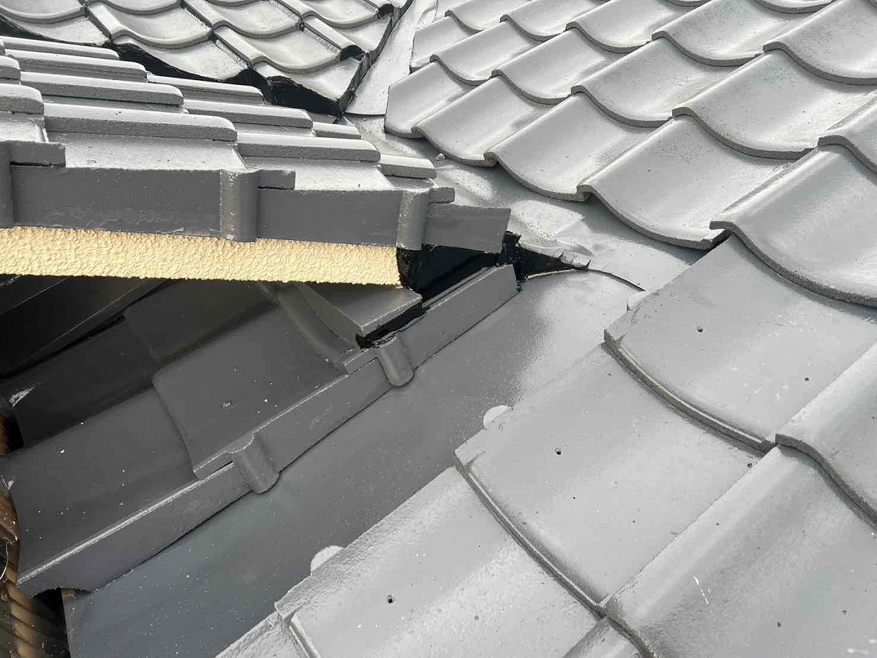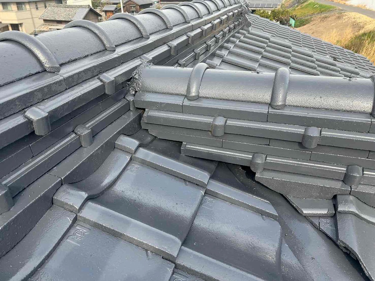 経年劣化により瓦の漆喰等がとれており、雨漏りが発生していた。
