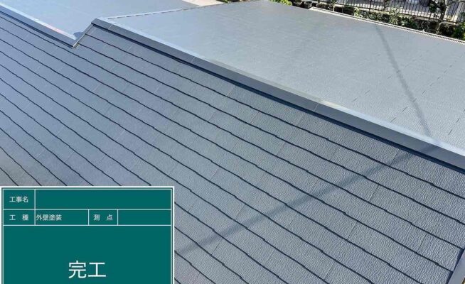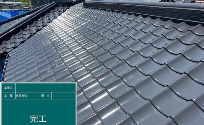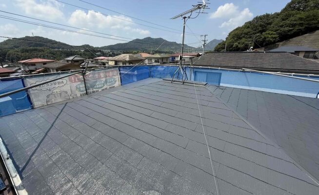 ご相談 屋根の塗膜が薄くなっており、防水機能が弱まっていた。工事内容 1.足場設置 2.高圧洗浄 3.屋根塗装3回塗り 4.足場解体 5.完工