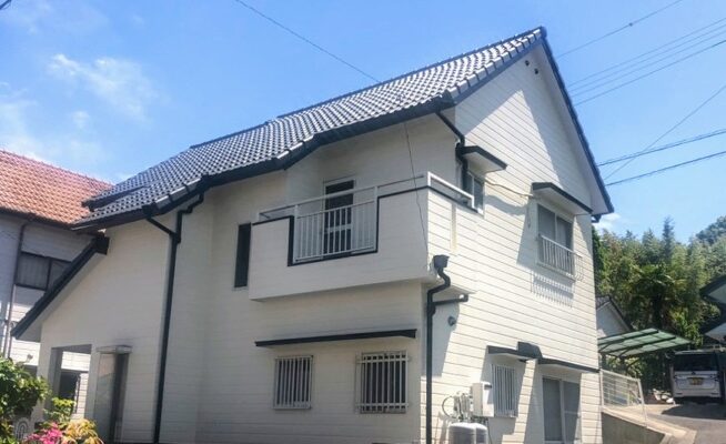 ご相談 瓦が割れている工事内容 1.屋根・外壁の高圧洗浄 2.養生 3.目地シーリング 4.瓦差し替え(3枚) 5.屋根塗装(3度塗り) 6.外壁塗装(3度塗り) 7.ベランダ防水 8.雨樋塗装等、その他付帯工事
