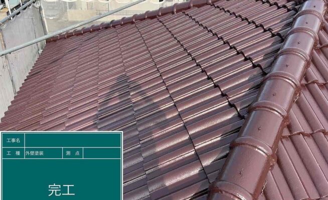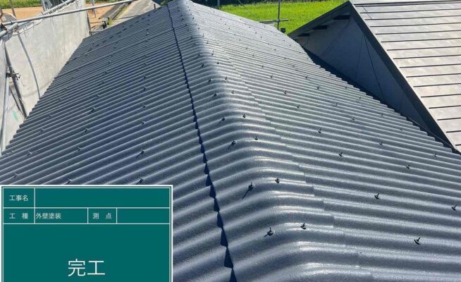 ご相談 屋根の塗膜が薄くなっており、防水機能が弱まっていた。工事内容 1.足場設置 2.高圧洗浄 3.屋根塗装3回塗り 4.足場解体 5.完工
