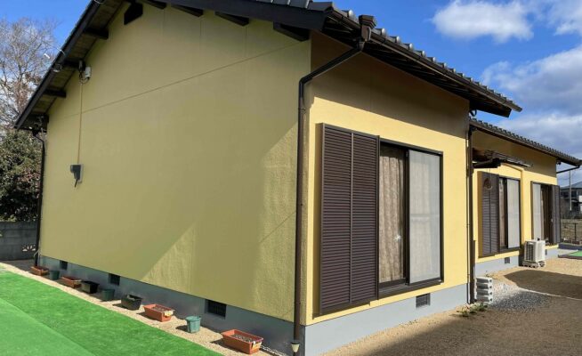 ご相談 外壁の塗膜が薄くなっており、防水機能が弱まっていた。工事内容 1.足場設置 2.高圧洗浄 3.養生 4.外壁塗装3回塗り 5.外壁塗装2回塗り 6.足場解体 7.完工