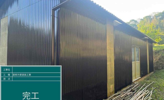 ご相談 トタン壁に錆が出始めていた。工事内容 1.高圧洗浄 2.ケレン 3.錆止め塗装 4.上塗り塗装 5.完工
