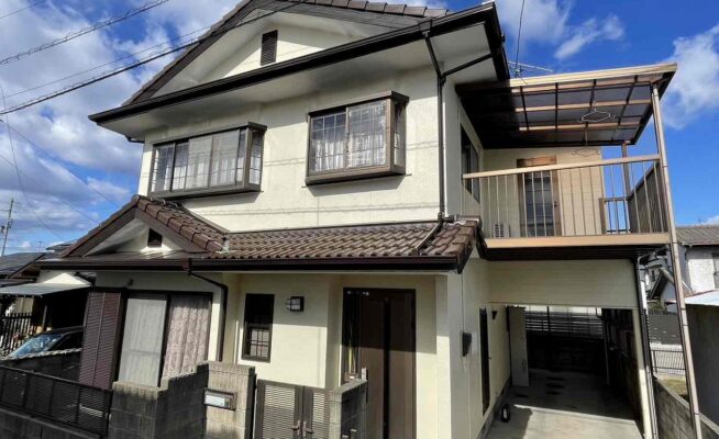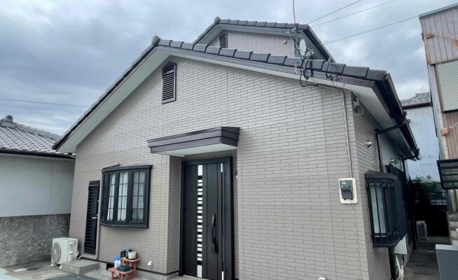 ご相談 屋根の塗膜が薄くなっており、コケが生えてきていた。工事内容 1.高圧洗浄 2.養生 3.外壁塗装工事(3回塗り) 4.軒天塗装 5.雨樋等付帯塗装工事 6.完工