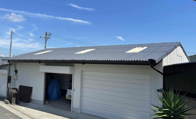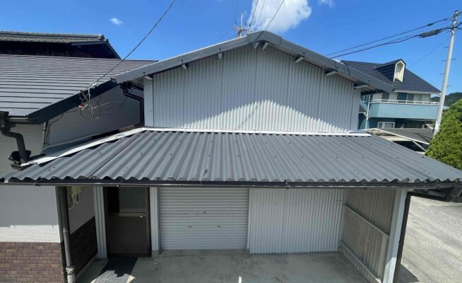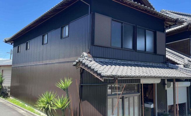 ご相談 スレート外壁の塗膜が薄くなっていた。工事内容 1.足場設置 2.高圧洗浄 3.養生 4.外壁塗装3回塗り 5.その他付帯塗装工事 6.足場解体 7.完工