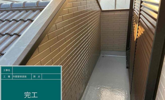 ご相談 ベランダの塗膜が薄くなっており、防水機能が弱まっていた。工事内容 1.高圧洗浄 2.下塗り 3.中塗り 4.上塗り 5.完工